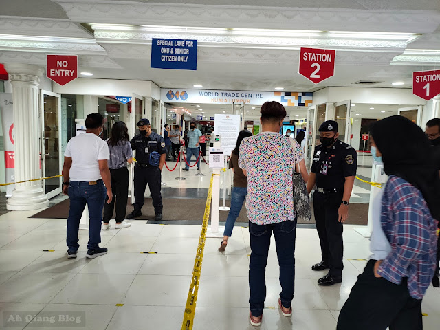 大概半个小时,我就到了太子世界贸易中心车站,记得最后一次去那里是出席毕业典礼。大约十分钟,我就走到太子世界贸易中心。由于人潮汹涌,警察与军人都有在现在维持次序和确保所有申请疫苗者都有保持社交距离。 在那里有三个疫苗站,相关人员检查了我的My Sejahtera 的申请预约后,我就被安排到第二站的礼堂里填表格和等待施打疫苗。当天,为了避免接受疫苗后会有不良的副作用,不管在填个人表格或是My Sejahtera的程式里,都会需要你更新你是否对药物敏感或是有患上什么病。 大约十分钟后,我就被安排到另一个礼堂拿编号以及填个人表格。当自己的编号被叫到的时候,我又被安排到去另个礼堂等待接受第一剂疫苗。因为我被安排到第二站,所以我需要沿着第二站的指示走到礼堂。